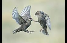 The PAGB recently put together a digital entry for the FIAP Worldwide Nature Biennial competition. 20 images were selected from the UK in a themed entry with no more than 2 per person. Richard and Gill O'Meara were delighted to have 2 each of their images chosen, thereby having 20 percent of the UK entry! The UK came 4th overall. Congratulations must go especially to Richard, whose image 'Juvenile Starling Aggression' (pictured) won a Silver Medal. The four images from Poulton can be viewed on the External Competitions' page of this website.