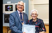 It is our great pleasure that Cynthia M Lee CPAGB was able to accept the invitation to Honorary Life Membership of the Society. As well as serving as Treasurer for a number of years, Cynthia became our first Lady Chairman from 1997 to 1999. She was involved in many aspects of the Society, together with her late husband Bert, who served as Chairman between 1984 and 1986. The photograph shows Cynthia receiving her certificate from current Chairman Alan Cameron at the opening of our 2019 Annual Exhibition.