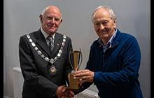 Congratulations to Poulton-le-Fylde for winning the Annual PDI Knockout last night at the Elm-Bank Banqueting & Conference Centre, Eccles. Peter Genard MFIAP EFIAP/d2 ably judged the competition, entertaining the audience with his good humour, and critiqued every image shown. Eventually, the images were whittled down to a handful, and Peter chose ‘Greenfinch Encounter’ by our own Gill O’Meara as his favourite photograph. The adjacent photo shows Alan Storey receiving the PDI Knockout Trophy from L&CPU President James Hardy. More details of this result, and a copy of Gill's winning image, can be found on the External Competitions' page of this website.